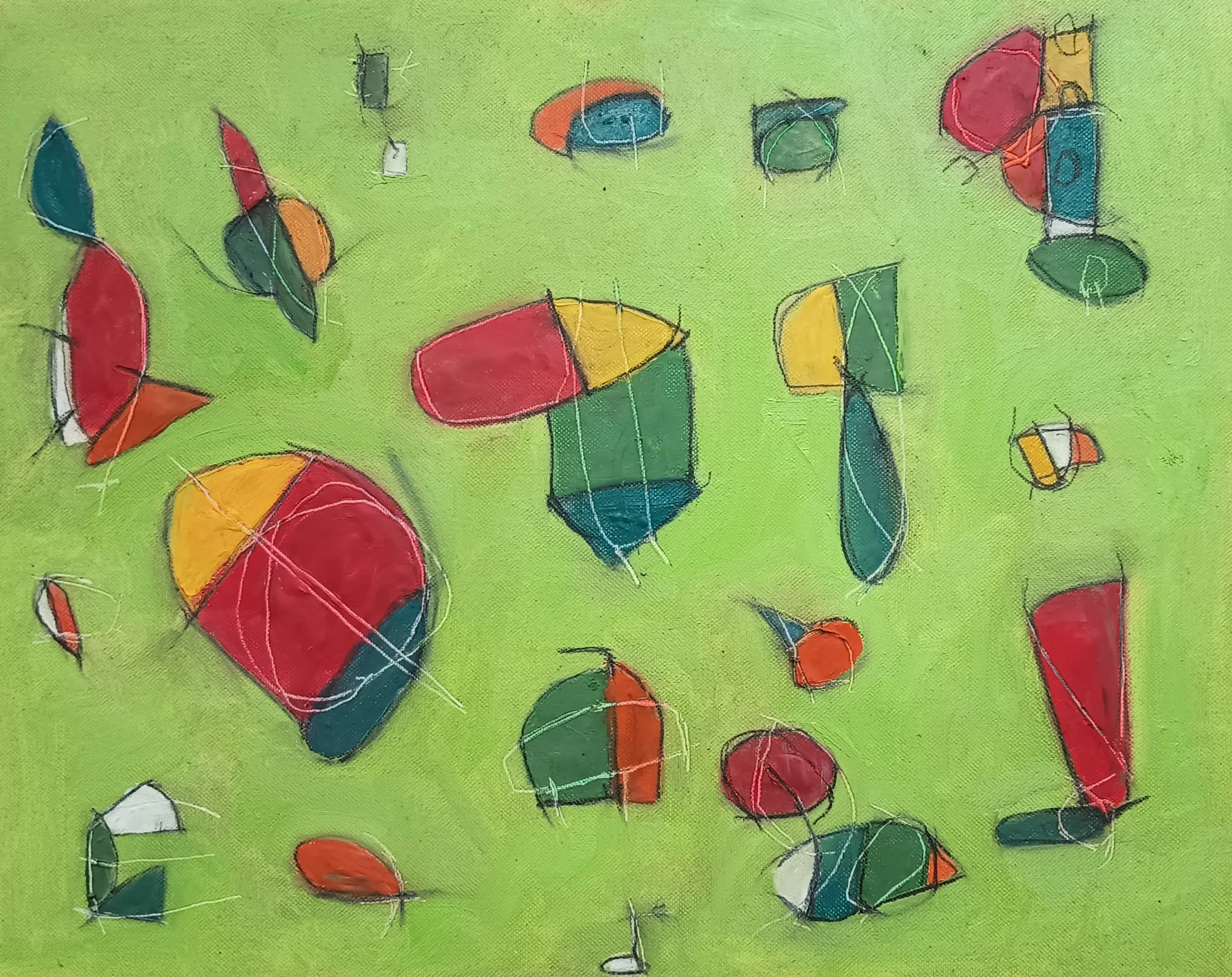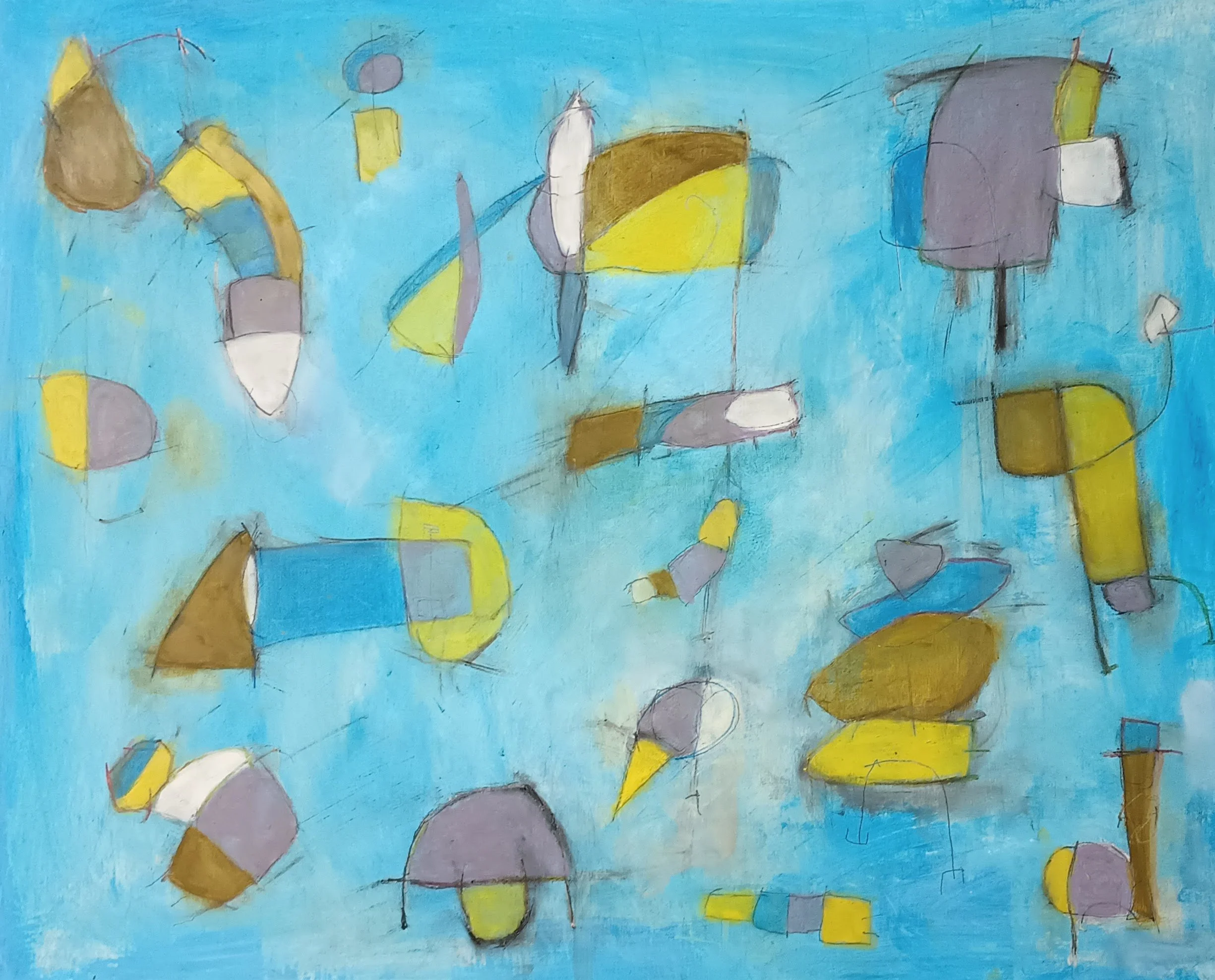 Oil, acrylic and pencil on canvas